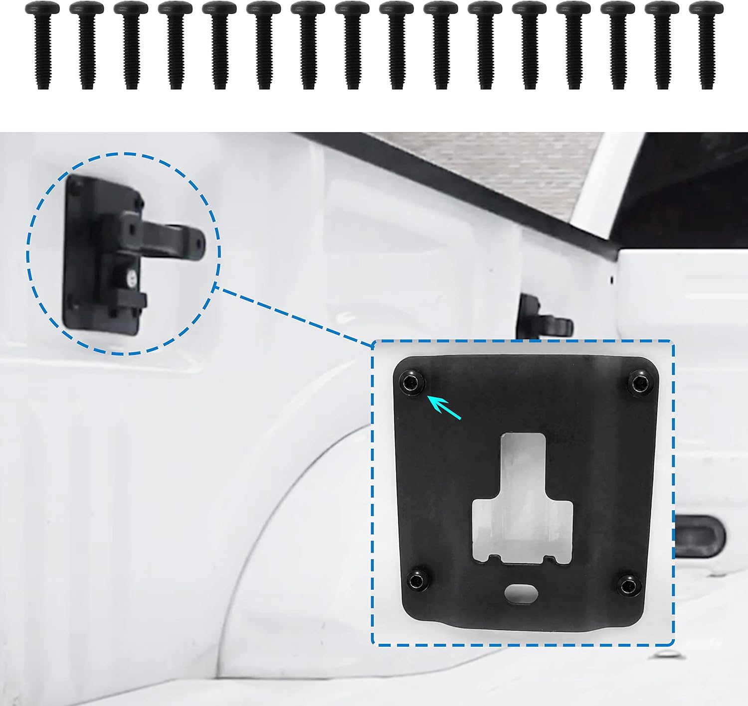 Product description: FlyingAMZ 16 PCS/Set Truck Bed Tie Down Brackets Anti-Theft Screws Replacement for Ford FL3Z-9928408-AB,Ford F150 F250 F350(2015-2022) New&Raptor Bed Load Hook Reinforcement Panel